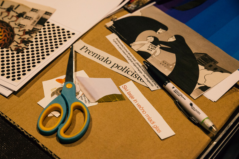 Far away, so close, ki vsebuje večino nastalih del. Izvirnike si do konca aprila lahko ogledale v glavni avli Kina Šiška (na steni pod stopniščem). Kolažem smo priložili tudi omenjeni zin in zina s prejšnjih delavnic v Murski Soboti in Cerknem. Nekaj kolažev in zgodb si lahko preberete in ogledate spodaj. Fotografije Urške Boljkovac z delavnice so objavljene na Facebook strani